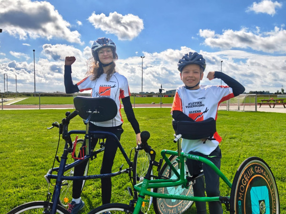 Linn en Lenn, beiden lid van atletiekvereniging Altena Road Runners en kindambassadeur van Spieren voor Spieren, laten zien dat je altijd kunt meebewegen – ieder op zijn of haar eigen manier. Beiden hebben een spierziekte, maar trainen iedere zaterdag vol enthousiasme mee met de pupillen, mét hun frame.