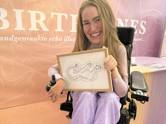 Vijf jaar geleden ben ik, ondanks mijn beperking, mijn onderneming Birth Lines begonnen. Met Birth Lines maak ik handgetekende echo illustraties op basis van de echo’s van klanten en heb ik een collectie invulboeken ontwikkeld voor de zwangerschap en kindertijd.