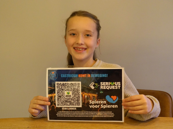 Noé, 9 jaar, gaat in Castricum, Limmen en Akersloot langs de deuren en spreekt familie en vrienden aan om een donatie te vragen zodat de hele gemeente samen in actie komt voor Spieren voor Spieren.