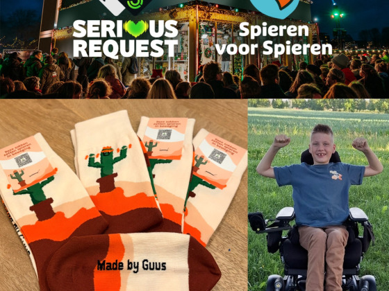 Guus heeft een sok helemaal zelf ontworpen. De cactus die op de sok is afgebeeld heeft hij zelf getekend en is daarna digitaal gemaakt. Met deze inzet probeert hij zoveel mogelijk sokken te verkopen. Het bedrijf dat ons geheel kosteloos helpt is Soque uit Elst, dank jullie wel mannen!