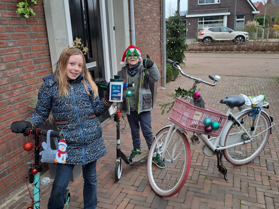 Geld inzamelen door flessen en blikjes op te halen voor statiegeld. En dinsdag zolang mogelijk steppen en daar geld voor ophalen.