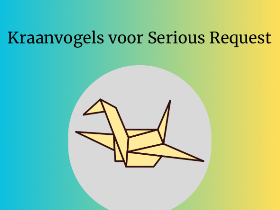 - U doneert via deze actiepagina van Serious Request. Daarna kunt u ons een mail sturen naar kraanvogelssr25@gmail.com met uw adresgegevens. Gelieve hier ook uw naam van de donatiepagina en het gedoneerde bedrag te vermelden om te verifiëren. Zo kunnen wij de kraanvogel opsturen. (Let op: Dit kan NIET als u anoniem doneert).