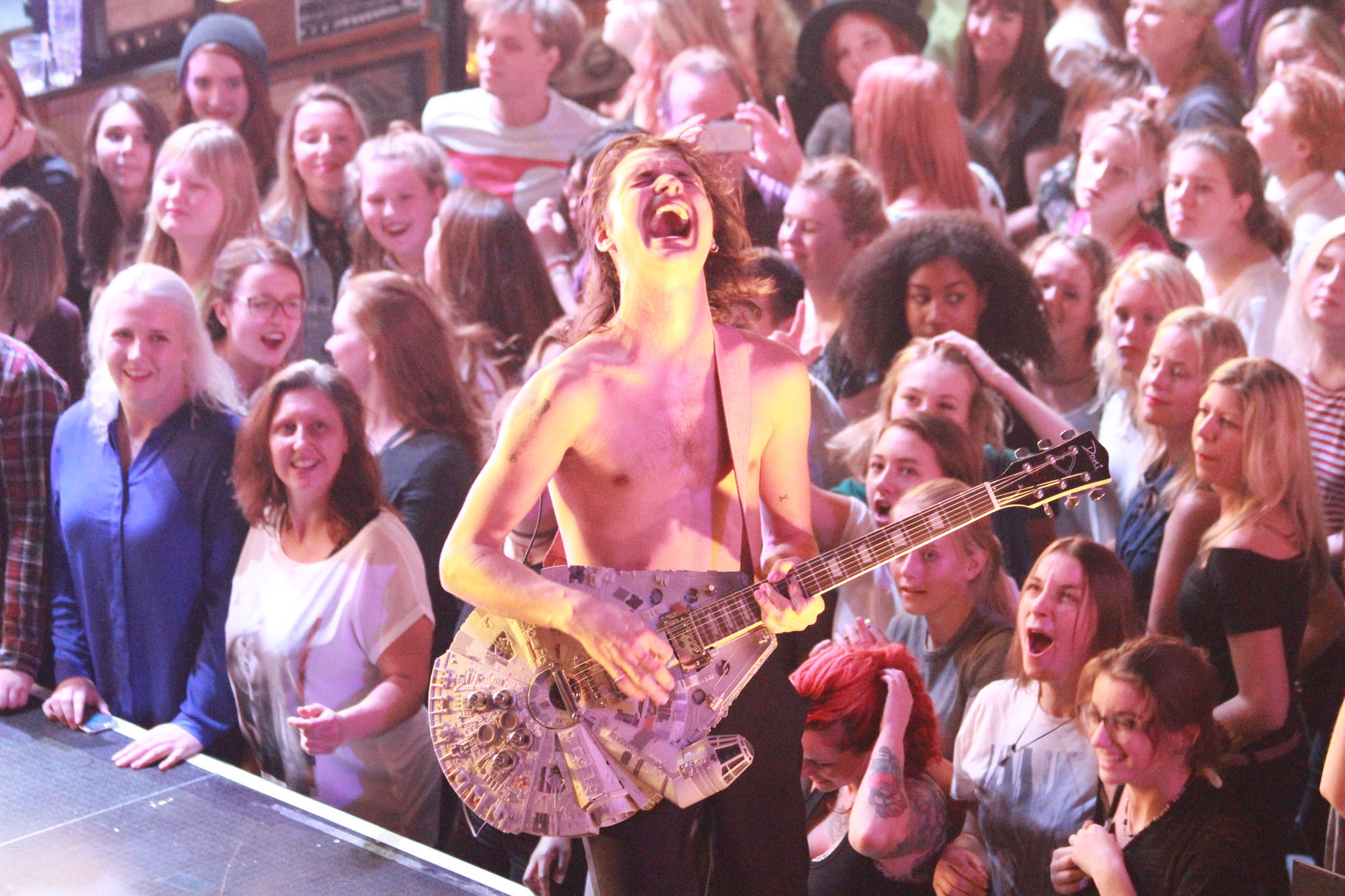 Richard Kruspe, de gitarist van Rammstein, zet er nog een vurig tandje bij en verandert zijn instrument in een heuse vlammenwerper. Toll!