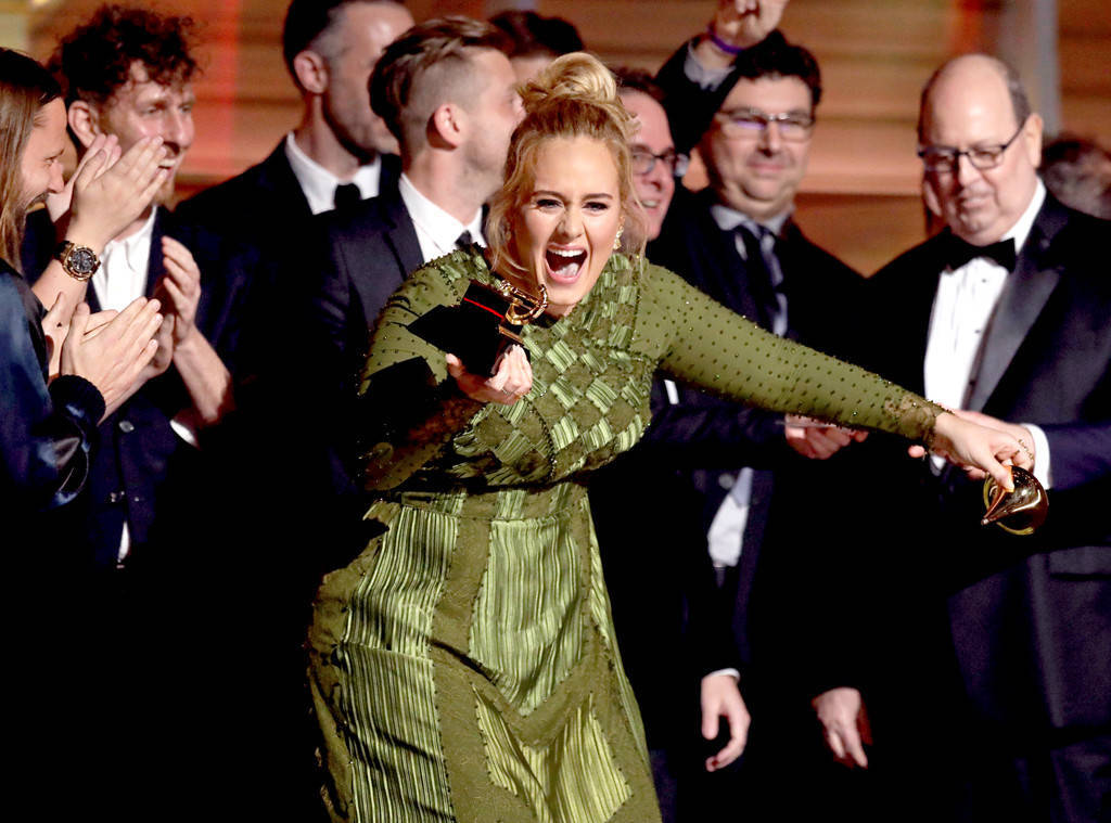 De grote vraag van de avond: gaat Beyoncé het Grammy-record verbreken of snoept Adele de awards voor haar neus weg? Nou, dat laatste. Miss Adele was gisteravond de grote winnaar en sleepte maar liefst vijf prijzen in de wacht. 25 werd verkozen tot beste album en 'Hello' onder andere tot beste liedje.