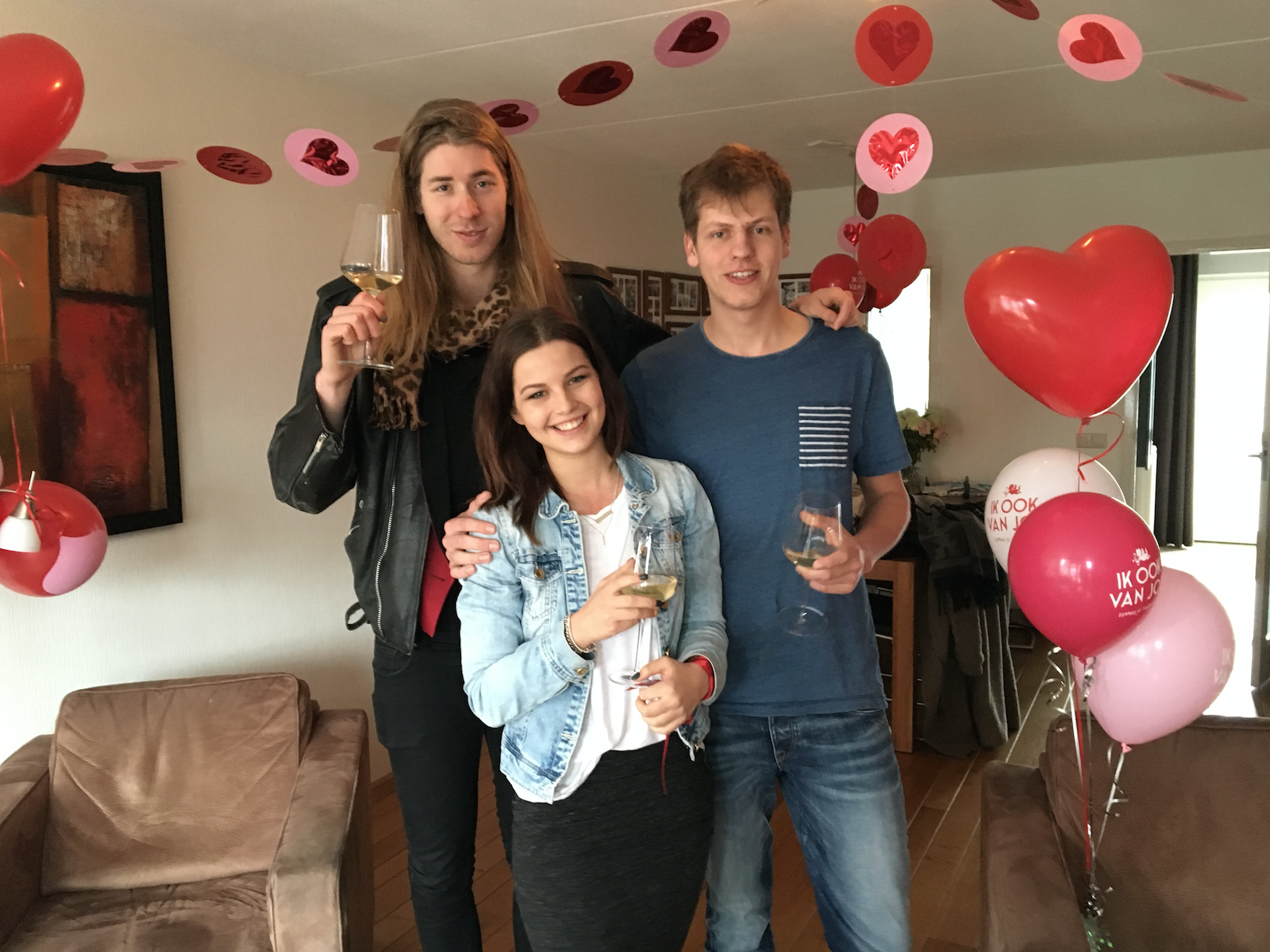 Kim (27) en Floris (28) gaan 27 mei trouwen. Floris vroeg haar een jaar geleden in Rome ten huwelijk. Super romantisch. En omdat Kim ook super romantisch is, wilde ze hem een jaar later op Valentijnsdag verrassen met een ontbijtje op bed. DUS schakelde ze 3FM in, want Frank is een meester in het samenstellen van een petit-dejeuner. Floris was erg verbaasd toen er opeens een hele lange kerel bij hem in de slaapkamer stond.