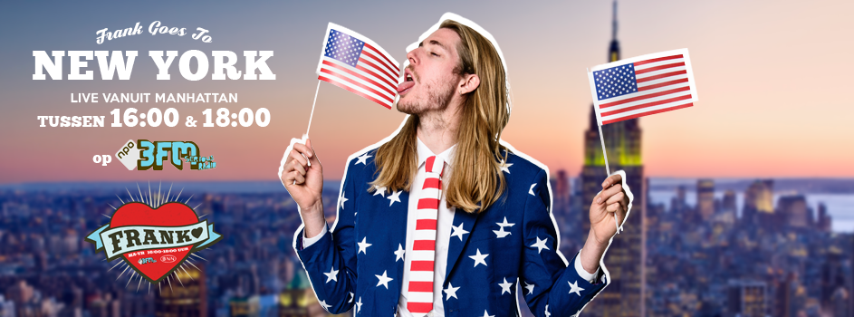 Luister maandag 7, dinsdag 8 en woensdag 9 november van 16:00 tot 18:00 uur naar Frank in New York op 3FM. Of volg Frank via Snapchat (Frank3FM) of Instagram.