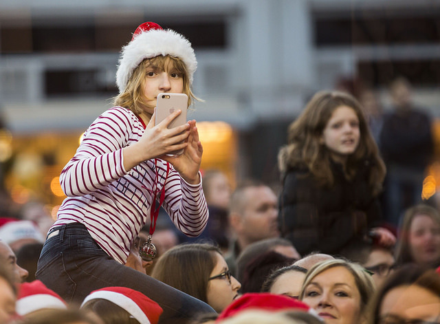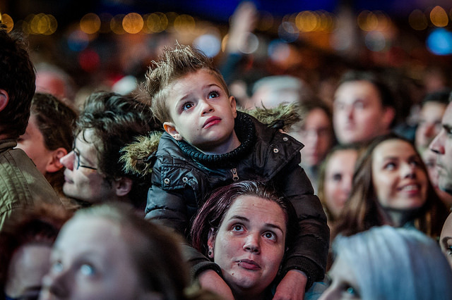 Zo kijkt deze vriend over alle grote mensen hoofden heen