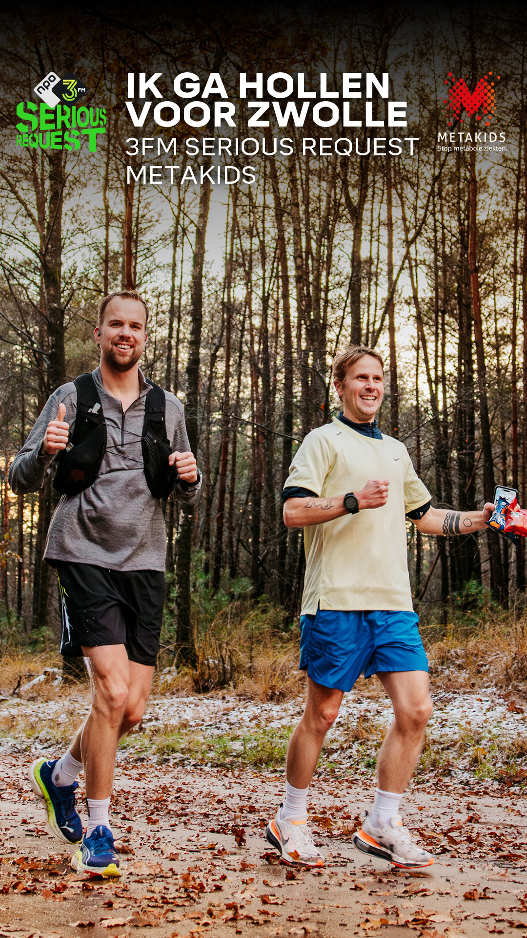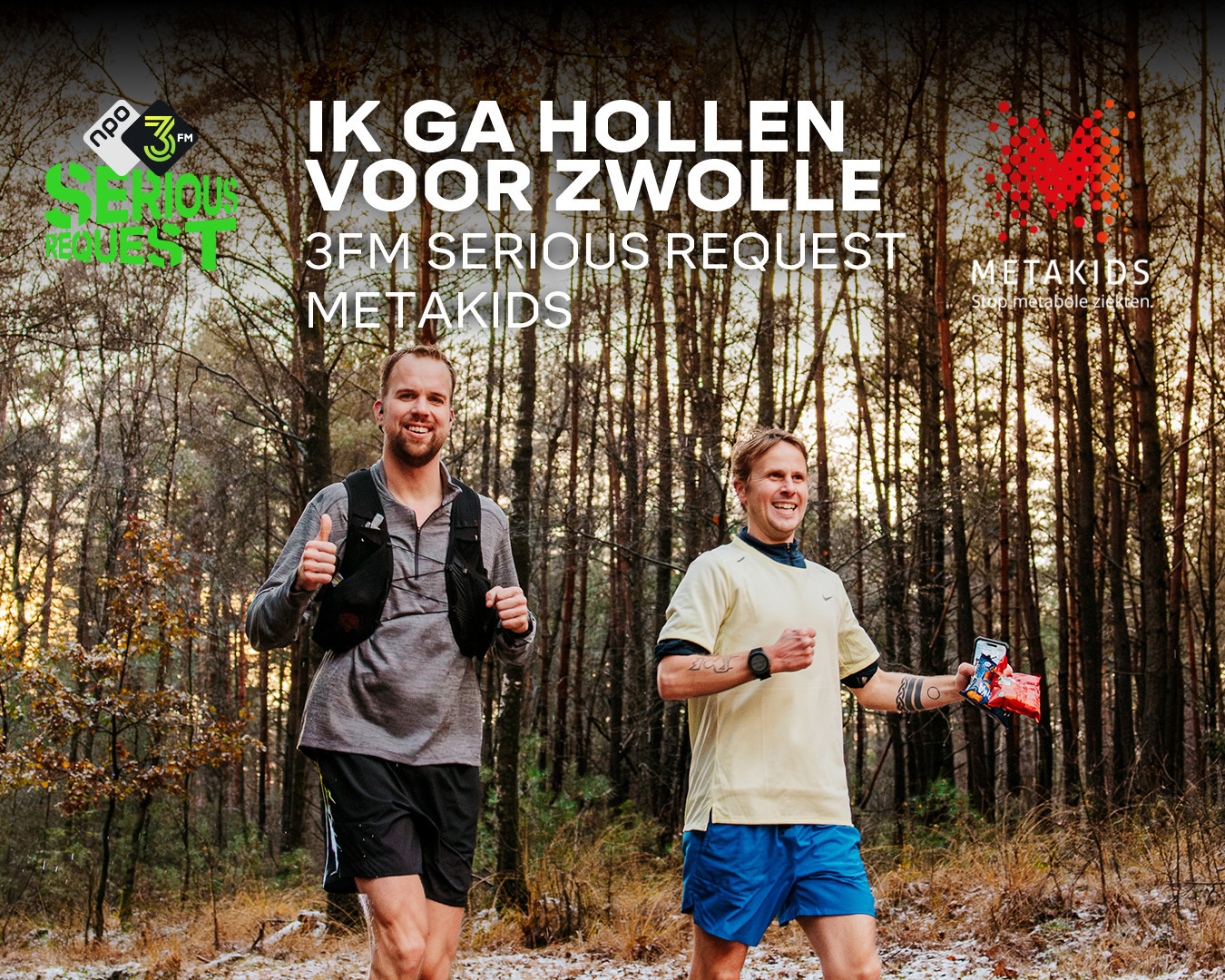 Dag twee van 3FM Serious Request is van start! Dit jaar komen 3FM-dj's Barend, Sophie en Wijnand in actie voor Metakids. Nog voor het Glazen Huis boven het Rodetorenplein in Zwolle uit torende, stond Wijnand al in de startblokken. Met zijn actie 'Hollen naar Zwolle' rende hij 86 km (!) van Hilversum naar Zwolle. Met deze actie haalde hij meer dan €200.000,- op. Nu kan jij ook in beweging komen met 'Hollen voor Zwolle'!