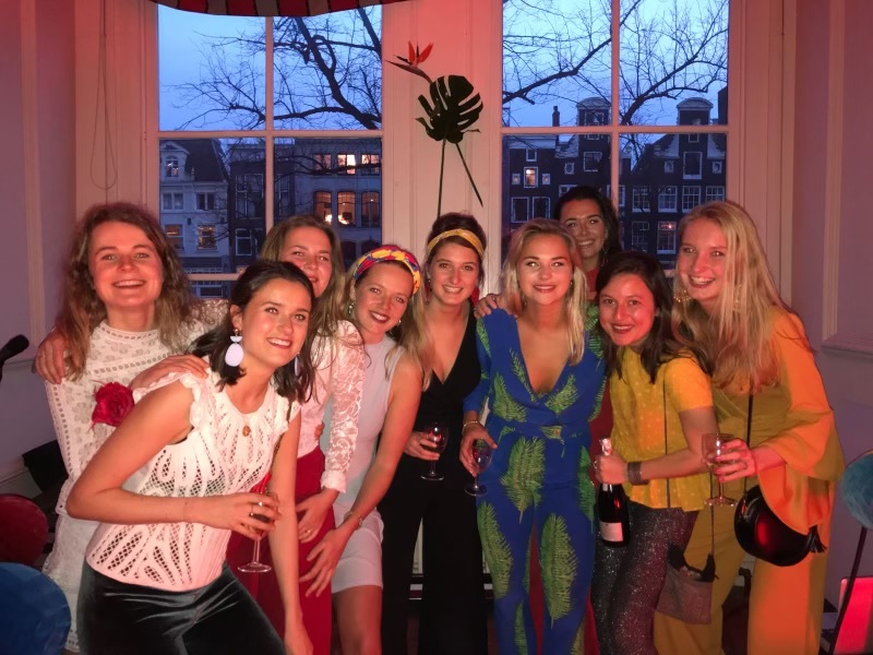 Floor met haar huisgenoten op haar 21ste verjaardag