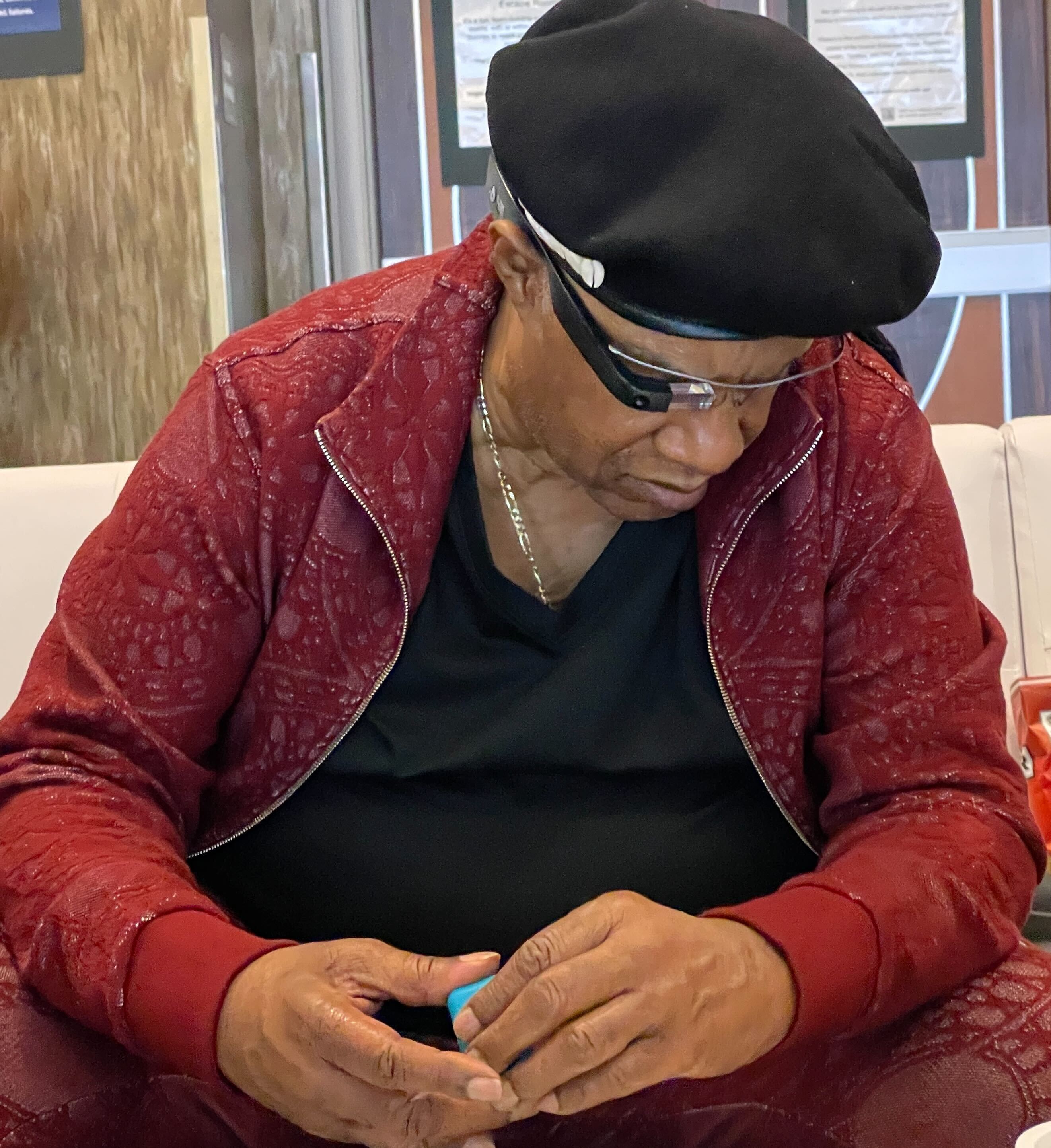 Wat ook heel bijzonder is: Stevie Wonder test mijn bril nu! Ieder jaar staat Envision op de Amerikaanse beurs CSUN, waar nieuwe uitvindingen voor mensen met een beperking tentoongesteld worden. Stevie Wonder was er ook. Hij had flink zijn huiswerk gedaan want hij kwam speciaal langs voor de Envision Glasses. Hij is best een nerd, want hij heeft de bril anderhalf uur getest. Hij wilde alles proberen en ging zelfs met de bril op een bakje koffie halen. Hij heeft een exemplaar meegenomen om te testen en ik zal binnenkort zijn feedback ontvangen.”