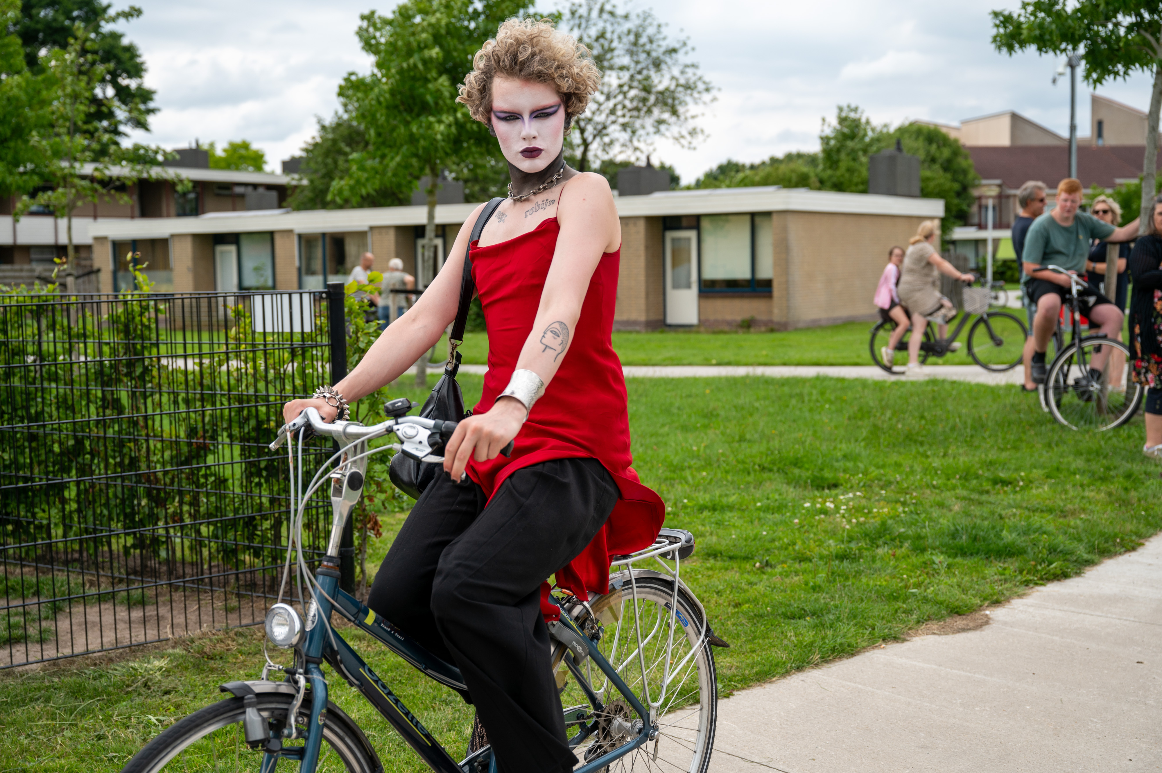 2. Work girl! Zie onze Milan shinen op haar hoge hakken. Zij gaf dit jaar haar dorp Kollum op voor Pride in mijn Dorp. Waarom Kollum? "Ik zocht herkenning voor mensen die net als ik zijn." Milan is trans non-binair. "Ik wil geen man zijn, ik wil geen vrouw zijn. Ik wil gewoon mezelf zijn."🌈