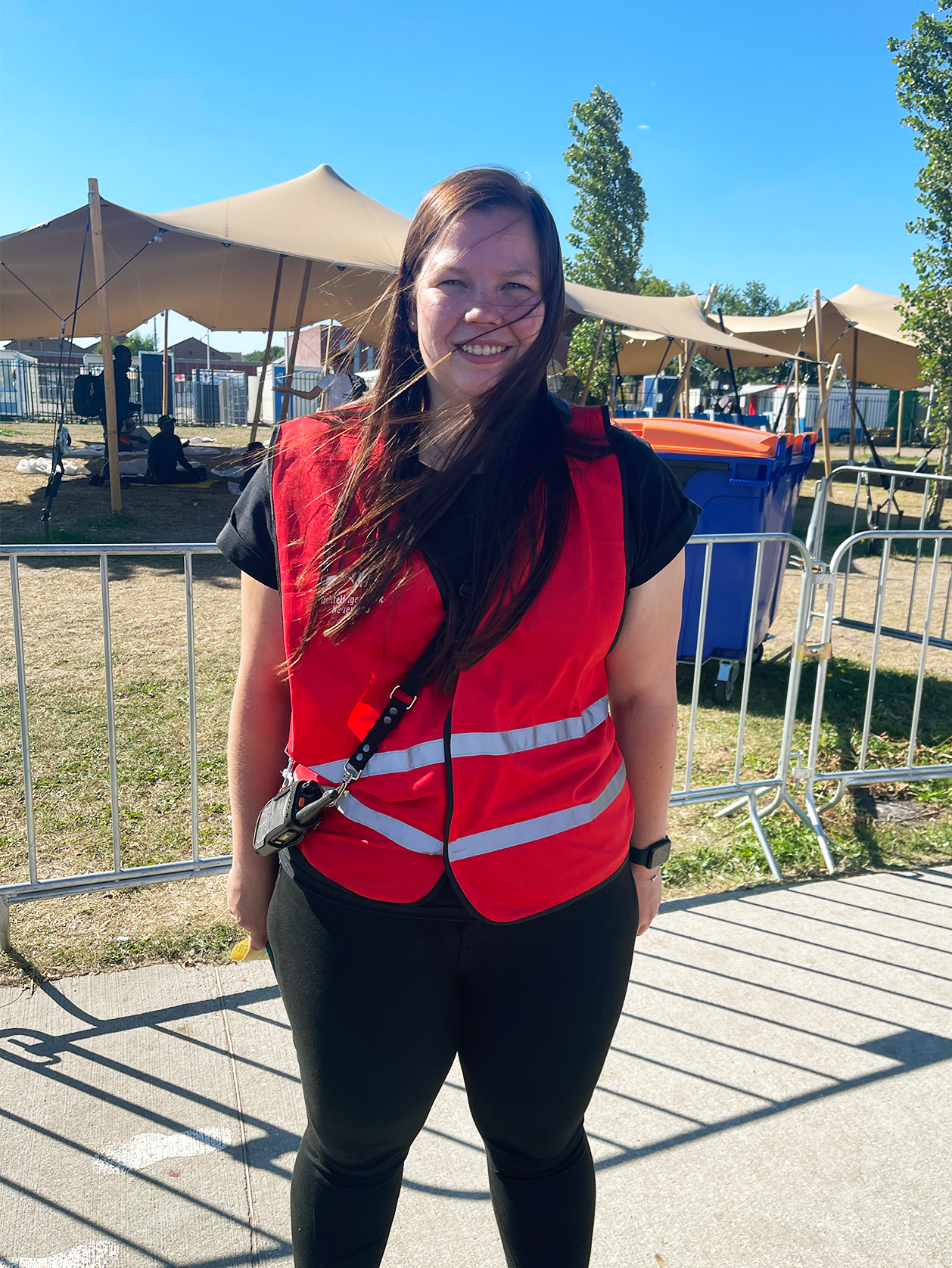 Inge (24) werkt namens VluchtelingenWerk Nederland bij de poort van het aanmeldcentrum. Sinds vorig weekend lijkt de situatie te verbeteren. De afgelopen dagen worden asielzoekers ook naar crisisnoodopvanglocaties elders gebracht.
