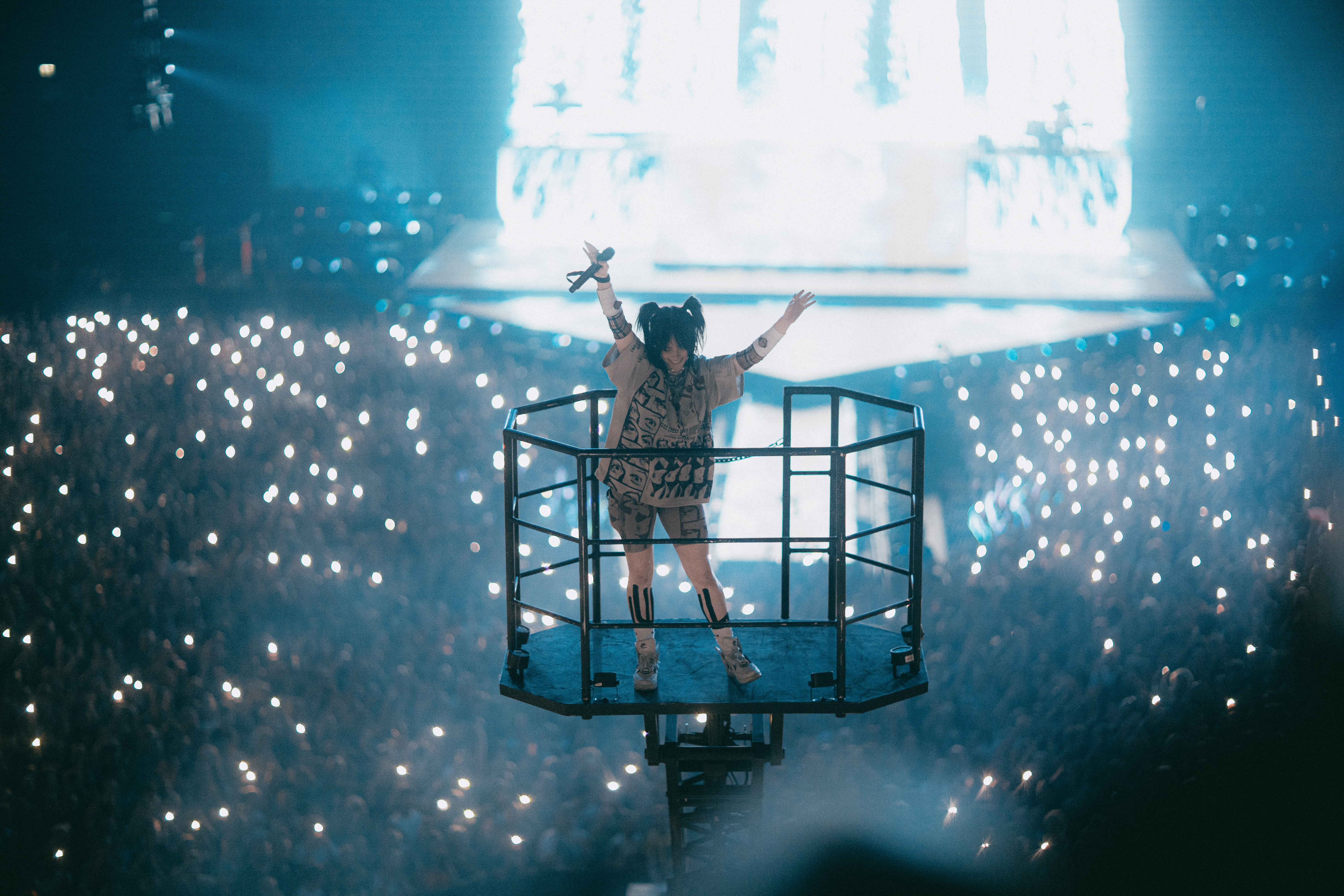 Billie zelf danste en rende zonder moeite de hele zaal door. Op het podium was een soort afdaling gemaakt waar ze overheen slenterde waardoor je extra goed zicht op de zangeres had vanuit iedere hoek van de Ziggo Dome. Halverwege de show was Billie ineens niet meer op het podium te vinden. De zangeres stond op een kraan en werd door de zaal heen gedraaid. Een fantastisch gezicht!