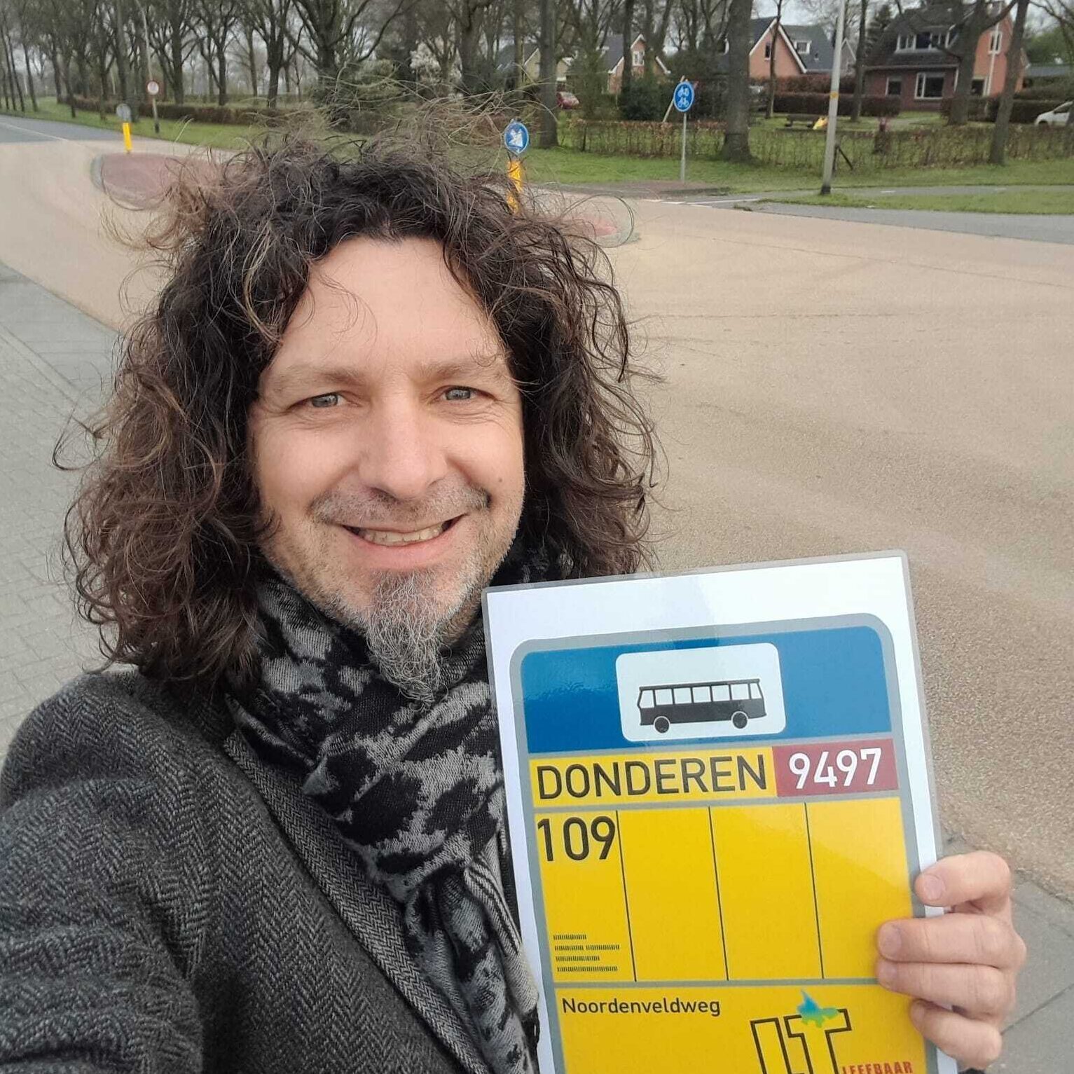 Kort voor alle commotie over het verdwijnen van alle bushaltes in Drenthe heeft luisteraar Marcel als gemeenteraadslid, met inwoners uit Donderen, zich hard gemaakt voor een halte in dit dorp (waar vroeger overigens wel een bus stopte). Met schriftelijke vragen, ludieke acties en wat gelobby.Inmiddels is er positief op gereageerd. En komt deze er binnenkort weer een bushalte in het dorp!!