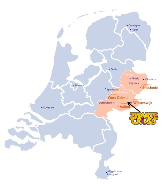 "Wauw, wat is het mooi hier in Twente!", roepen als je op de Zwarte Cross bent? Nee, doe maar niet. Want de Achterhoek en Twente zijn toch echt twee verschillende streken. De Achterhoek ligt in Gelderland, Twente ligt in Overijssel. Als je in Rotterdam loopt zeg je ook niet: "Wauw, wat is het mooi hier in Zeeland!". Juustum. De Zwarte Cross wordt gehouden in Lichtenvoorde, de Achterhoek dus.
