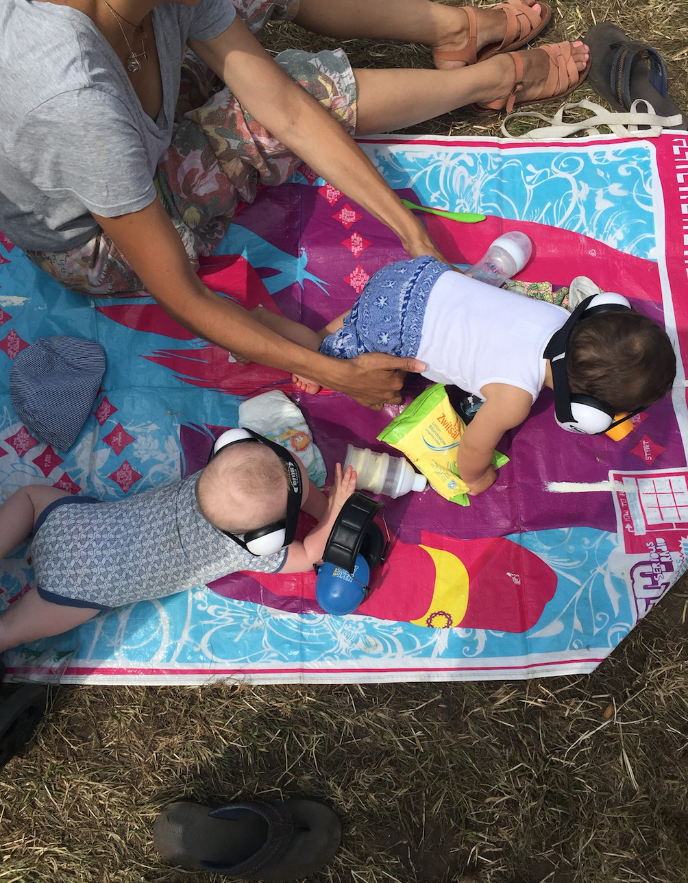 Duke, Mini Moos, Maxi Moos en Jip (0-6 jaar) hebben een tas vol headphones, billendoekjes en natuurlijk melk. Cute!