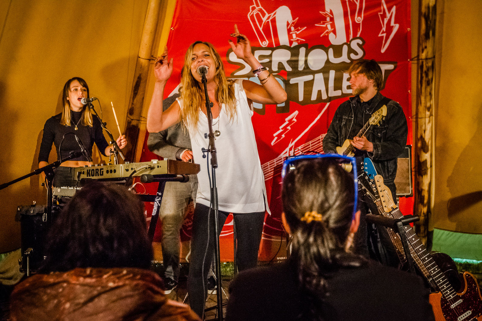 Regen slaat als hagelstenen op je gezicht, terwijl je je met moeite staande houdt tegen de gierende wind die over het festivalterrein jakkert. Dan is een warme zitzak in een winddichte indianentent geen straf. Een pluk Zwarte Cross bezoekers kreeg die kans en greep hem aan. Zij kregen daarbij ook nog een warm geluid aangeboden, want Sue The Night speelde er twee nummers voor hen: